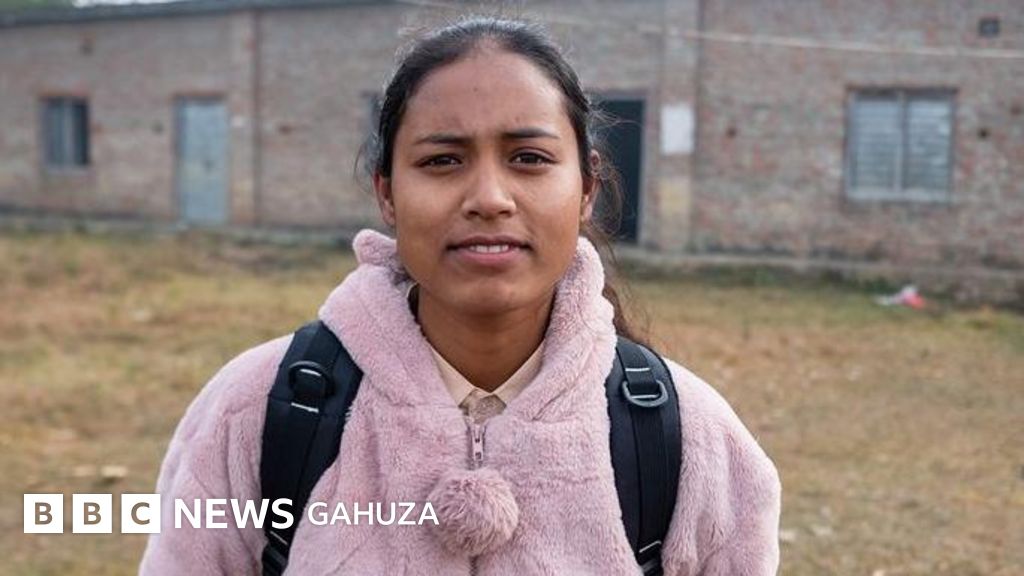 Mu misozi y’agace ka Terai muri Nepal, Hima Kusunda w’imyaka 18 aturutse ku ishuri yigaho anabayo, yambaye umupira wo kwifubika w’iroza.