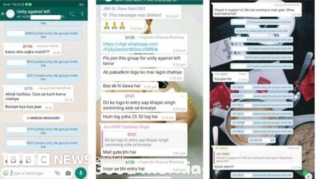 "અમે જોયું કે ગ્રૂપનું નામ 'યુનિટી અગૅન્સ્ટ લૅફ્ટિસ્ટ' હતું. એ વખતે રાતના સાડા નવ વાગ્યા હતા. એ લોકો એક-બીજાને મૅસેજ મોકલી રહ્યા હતા."