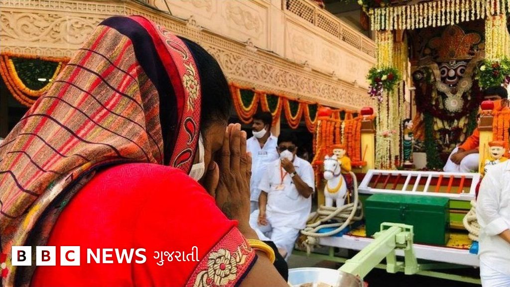 ઇમેજ કૅપ્શન, હાઈકોર્ટના આદેશ બાદ મંદિર પરિસરમાં માત્ર પ્રતીકાત્મક રથયાત્રા યોજાઈ