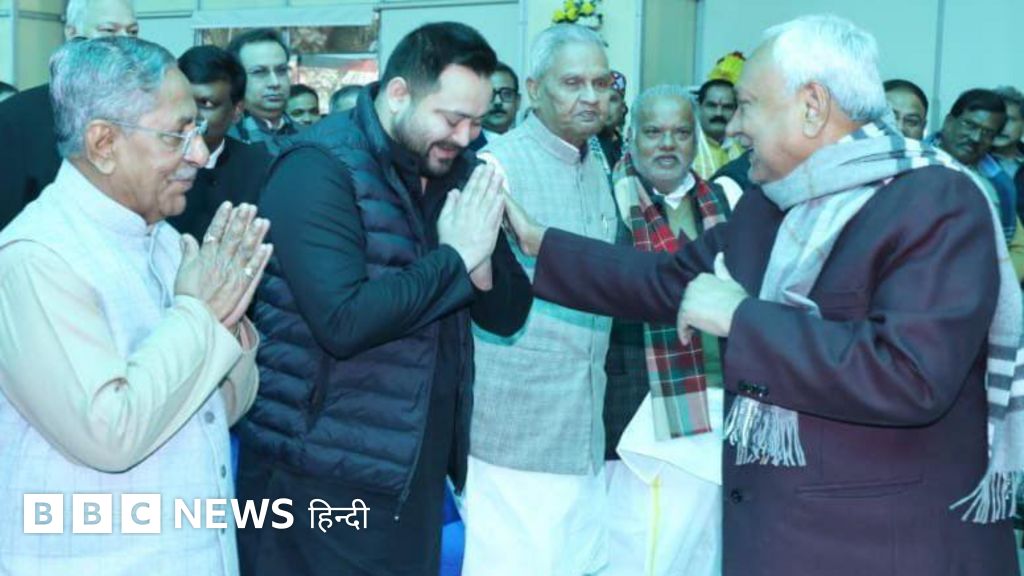 नीतीश कुमार की एक तस्वीर पर ख़ूब बात हो रही है. इस तस्वीर में नीतीश कुमार ने हँसते हुए तेजस्वी यादव के कंधे पर हाथ रखा है और तेजस्वी हाथ जोड़कर थोड़ा झुक कर हँस रहे हैं.
