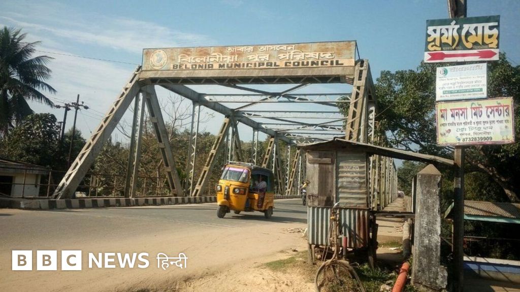 दक्षिण त्रिपुरा के सदर बिलोनिया ज़िले को घेरकर बहने वाली मुहुरी नदी के ऊपर बने बांध के बीचों-बीच भारतीय सीमा सुरक्षा बल की सतर्क चौकी है. सामने दूर-दूर तक जहां नज़र जाए वहां हरे-भरे खेत खलिहान हैं और उनमें कहीं-कहीं आपको बकरी और गायें भी दिख जाती हैं.