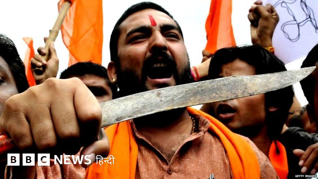तलवार, लाठी-डंडों के साथ आए कार्यकर्ता नवरात्र पर मीट की बिक्री का विरोध कर रहे थे.