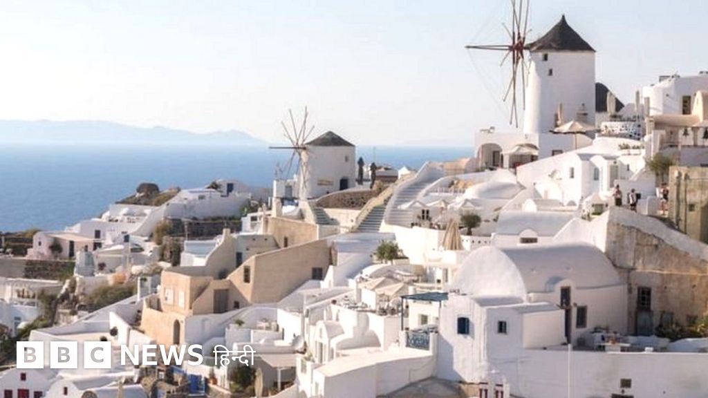 इमेज कैप्शन, ग्रीस के सेंटोरिनी स्थित ओया गांव में पारंपरिक पवन चक्की