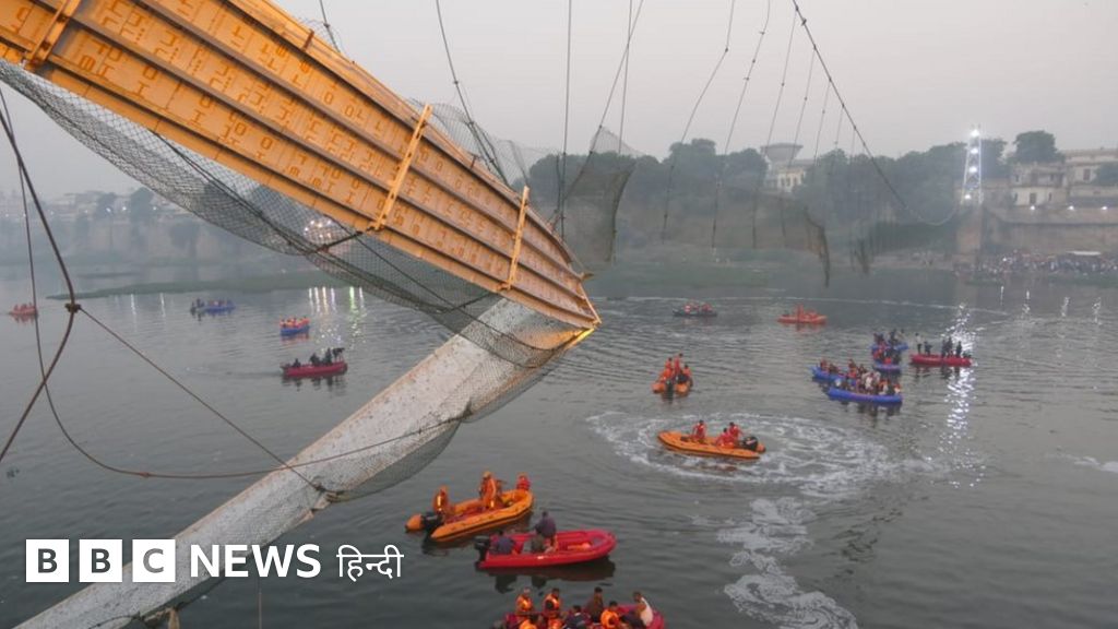 - गुजरात के मोरबी में नदी पर बना पुल गिरा. 141 लोगों की मौत हुई है.