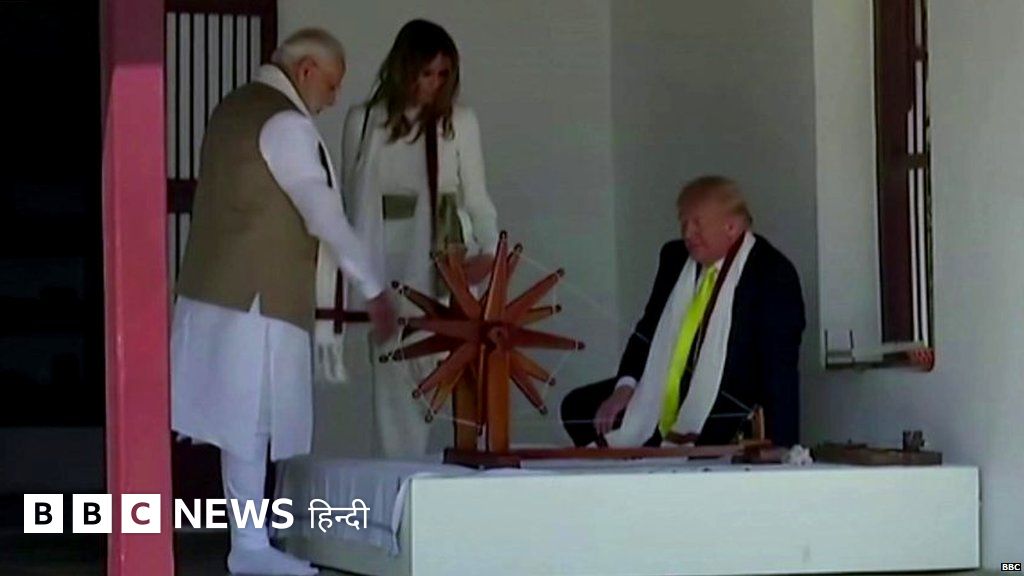 डोनाल्ड ट्रंप ने साबरमती आश्रम में चलाया चरख़ा
