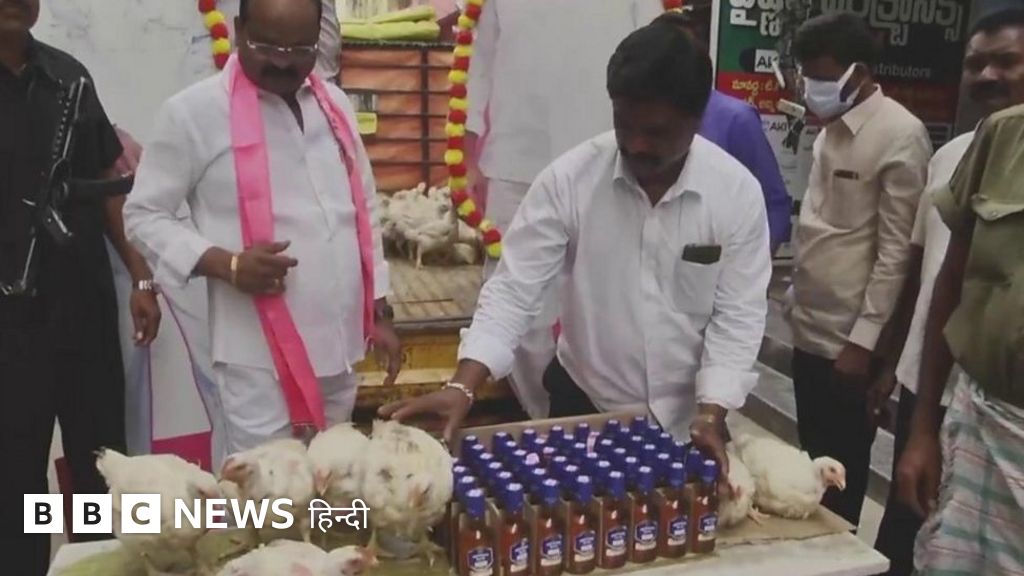 ख़ूब सारे चिकन और शराब की बोतलें. यहां किसी शादी की दावत की तैयारी नहीं बल्कि इसका रिश्ता राजनीति से है. टीआरएस नेता राजनल श्रीहरि ने मंगलवार को चिकन और शराब की बोतलें बांटीं.