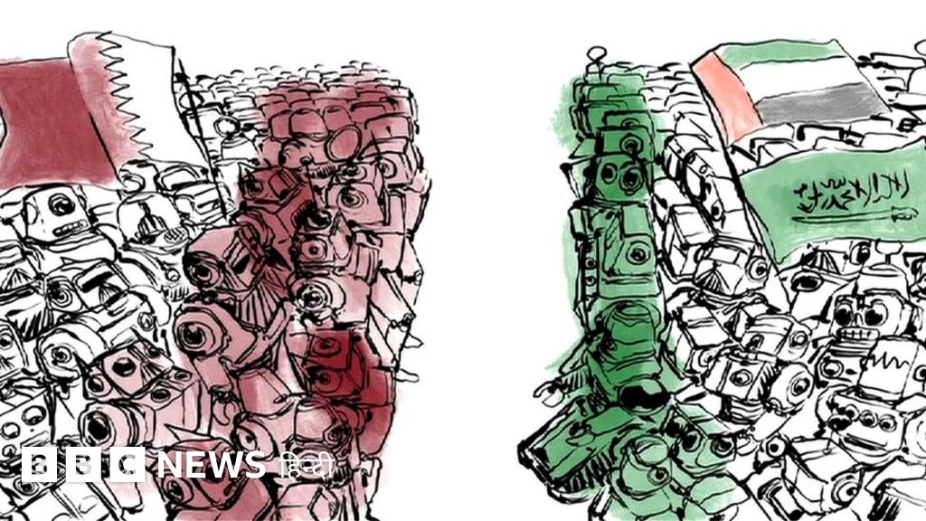 क़तर के अमीर शेख तमीम बिन हमाद अलथानी के विरोध में लोकप्रिय हैशटैग था #GaddafioftheGulf. उनकी तुलना लीबिया के नेता कर्नल गद्दाफी से की गई थी.