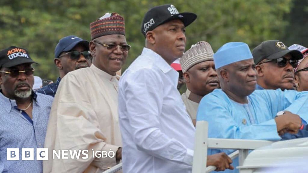 Cheta na onyeisi ụlọomeiwu ukwu bụ Bukola Saraki, onyeisi ụlọomeiwu nta bụ Yakubu Dogara nakwa onyeisi otu PDP, Uche Secondus na-eme ngagharị iwe ugbua.