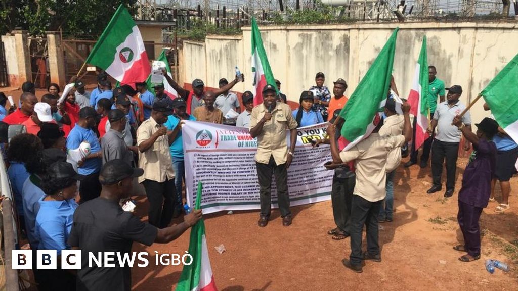 Onye isi TUC Enugwu bụ Comrade Igbokwe Chukwuma Igbokwe du ndị ọrụ TCN were zọchịe n'ụlọ ọrụ ahụ ime ngagharị iwe maka mmegbu ha sịrị na onye isi kachasị ụlọ ọrụ ahụ na-emegbu ndị ọrụ.