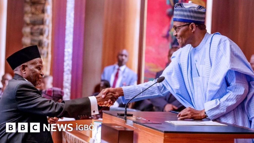 Onyeisiala Muhammadu Buhari eduola Tanko Mohammed n'iyi ọrụ dịka okaikpe kachasị na Naịjirịa taa n'Abuja.