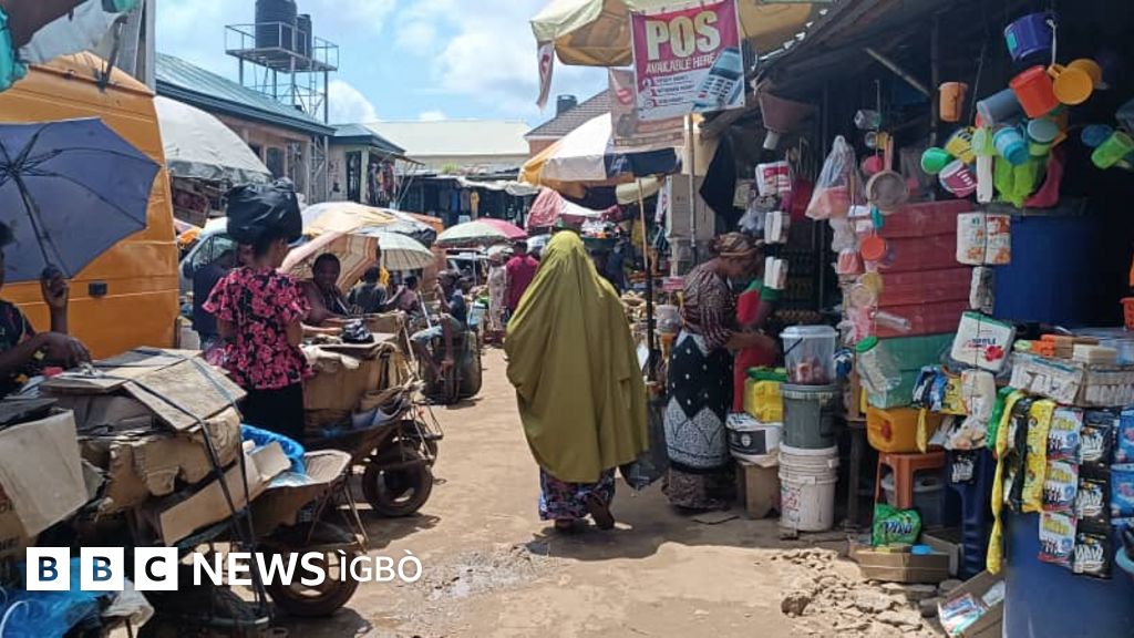Ọ gara n'ihu kwuo na ndị mmadụ na-azụahịa n'ahịa Eke Awka.