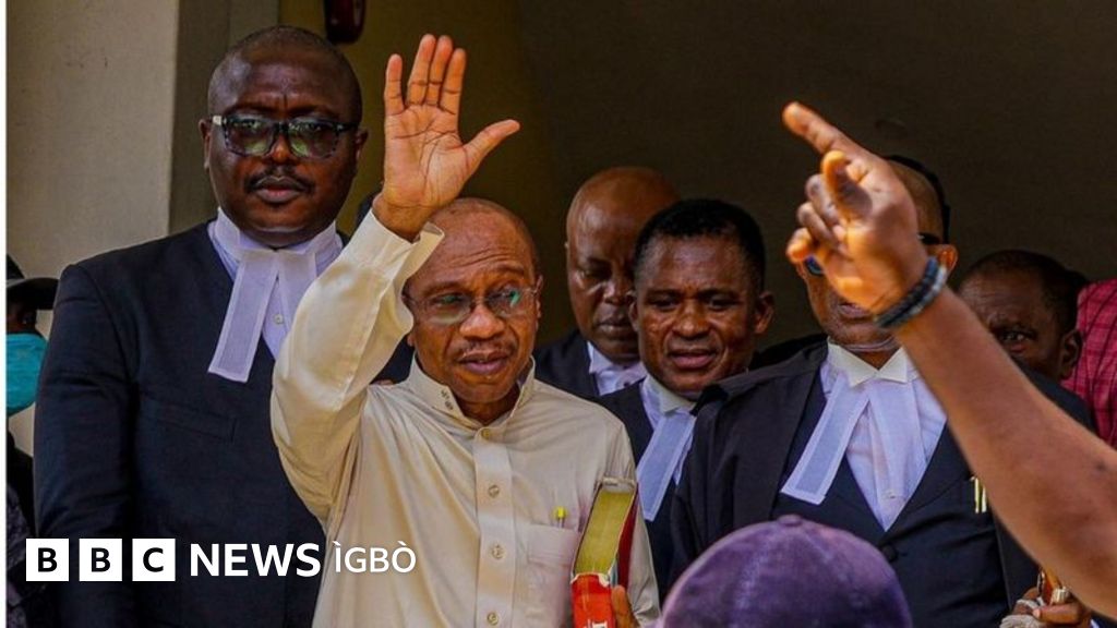 Godwin Emefiele bụ Gọvanọ ụlọakụ etiti nke Naịjirịa abịrutela n'ụlọikpe ukwu nke FCT dị n'Abuja, n'ụtụtụ Tọzde a, dịka a na-ekpe ya ikpe maka ebubo nrụrụaka ego ruru ijeri naịra 6.9 bụ nke gọọmentị Naịjirịa boro ya.