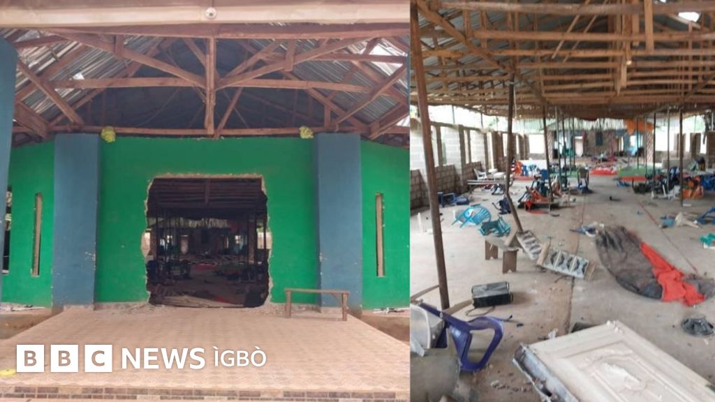 Mgbe BBC gara n'obodo ahụ ịchọpụta ihe mere, anyị hụrụ ụlọụka ahụ ndị obodo ahụ gbara ọkụ ma kwasasịa ihe n'ime ya.
