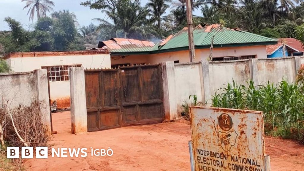 Onye ntaakụkọ BBC setere foto gosiri mmebi ụlọorụ ndị Inec dịka a mụnyechara ya ọkụ taa n'okpuruọchịchị Ezza Nọt nakwa okpuruọchịchị Ebonyi dị n'Ebonyi steeti.