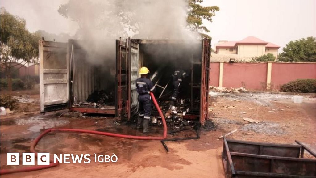 Ọkụ amaghị ebe osi gbapịala ụlọọrụ Inec dị n'Ọka, Anambara Steeti ụbọchị Tuzde.