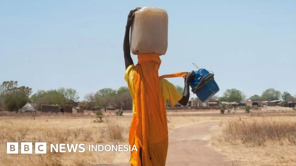 Keterangan gambar, Ilustrasi: Perempuan Sudan membawa jerigen air di kepalanya.