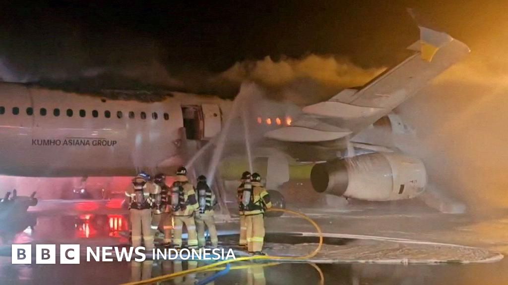 Pesawat Air Busan dilalap api di Bandara Internasional Gimhae, pada 28 Januari 2025. Akibat insiden itu, sebanyak tiga orang di dalam pesawat mengalami luka ringan.