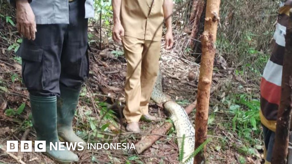 Keterangan gambar, Ular piton yang menelan seorang ibu di Kabupaten Luwu, Sulawesi Selatan, Selasa (02/07).