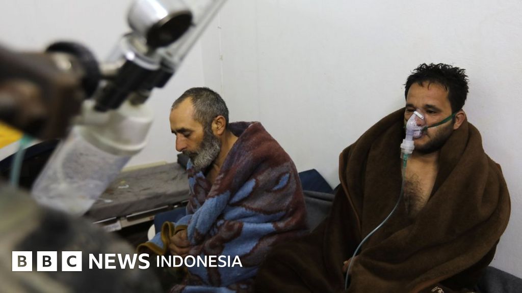 "Helikopter menjatuhkan bom yang mengandung klorin di Saraqeb dan 15 warga sipil terkena racun. Kami mendapat foto-foto ini dari rumah sejumlah rumah sakit yang ada di sekitarnya dan dari Helm Putih," kata dr Jad (bukan nama sebenarnya).