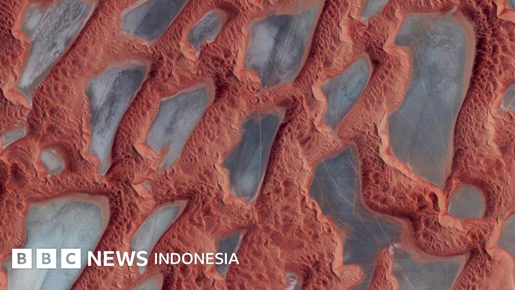 Keterangan gambar, Grant memberi judul foto ini The Empty Quarter, Saudi Arabia. Ini adalah gurun kosong seluas kira-kira 349,6 km persegi. Bagian yang berwarna kebiru-biruan adalah danau-danau kuno yang airnya mengering.