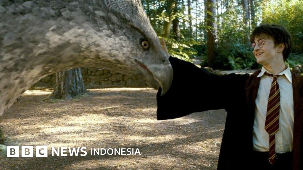 Keterangan gambar, Hipogriff, hewan fantastis yang sedang dibelai Harry ini, ialah kombinasi singa, elang, dan kuda.