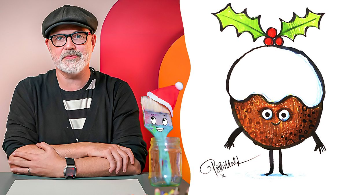 - 14. Pour Your Art OutThe Kwapongs get messy paint-marbling, while Martin Brown draws a Georgian and a Viking!15 mins