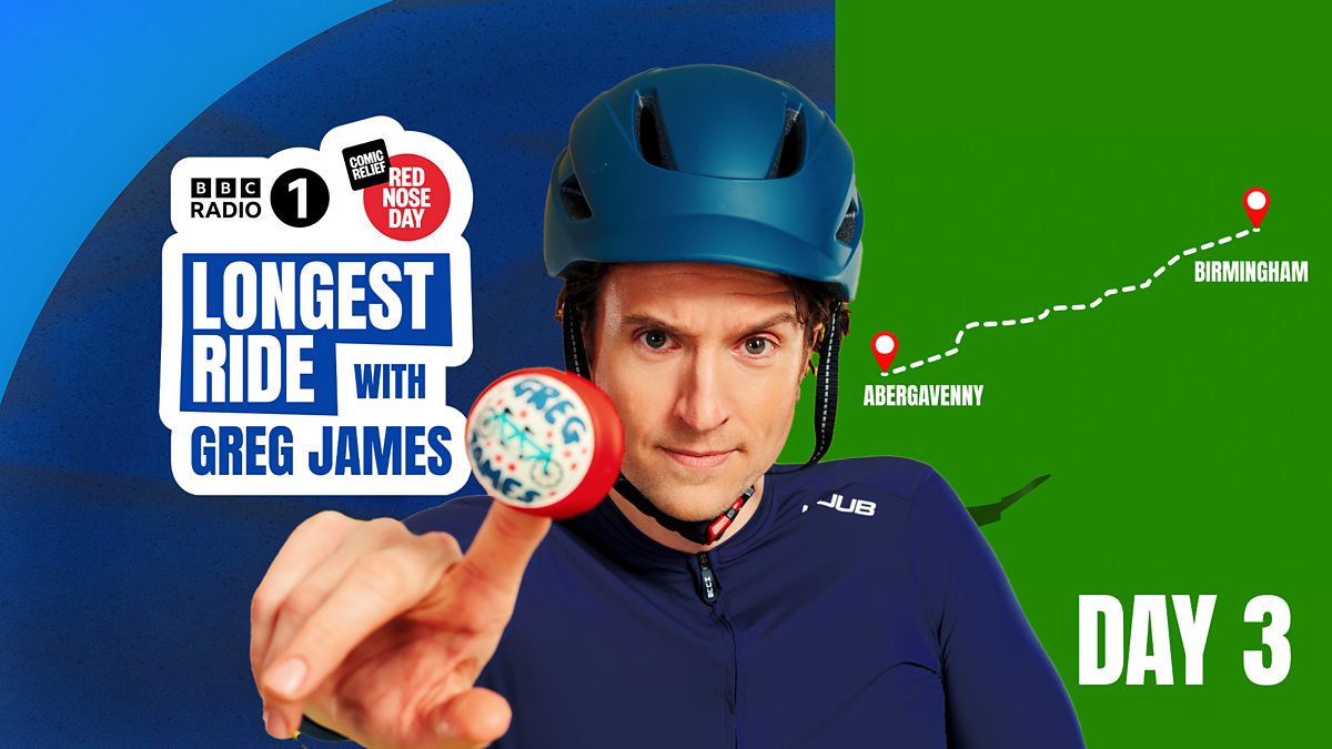 - Radio 1's Longest Ride with Greg James for Red Nose Day Day 3 - Abergavenny to Birmingham