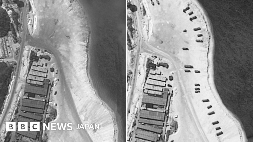 イメージサット社が撮影した今月2日の衛星写真では、島の浜辺に何も写っていなかったが、14日に撮影された写真では、いくつかのミサイル発射台と関連車両が置かれているのが分かる。