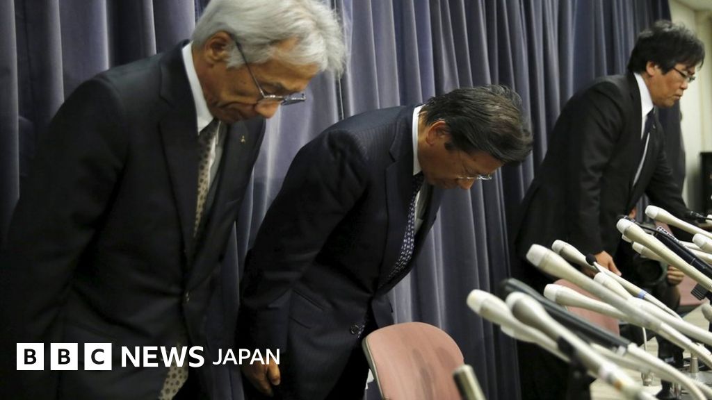 画像説明, 燃費データについて記者会見し謝罪する三菱自動車の幹部ら(20日)