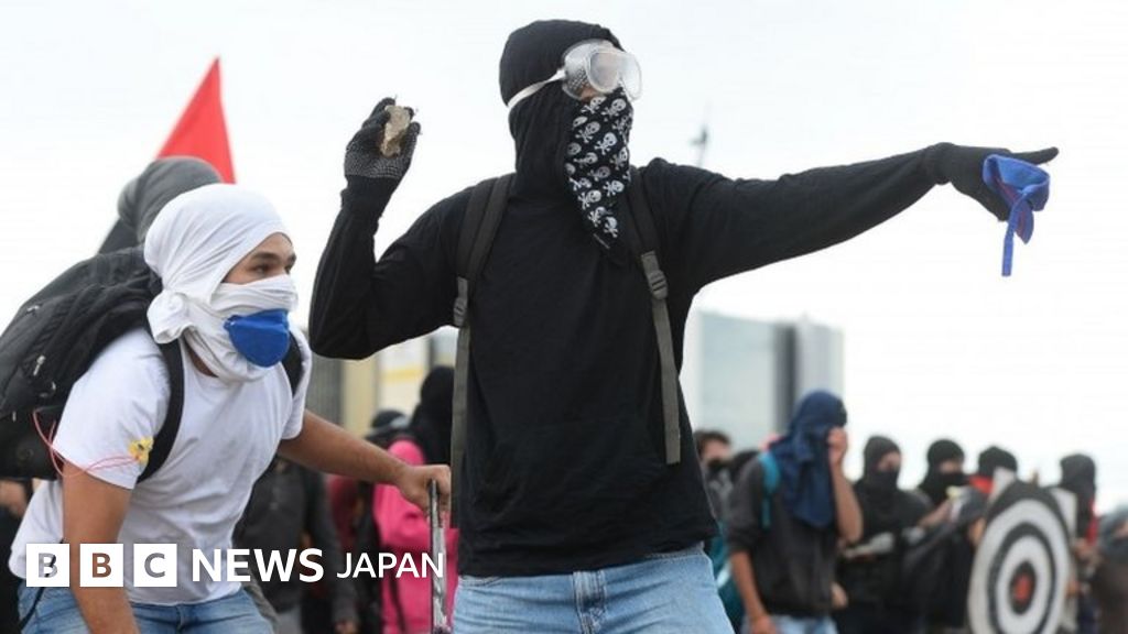 ブラジリアでは、覆面をしたデモ参加者がバスに放火するなどし、テメル政権寄りだとされるテレビ局「グローボ」に向かおうとしたが、機動隊に移動を阻まれた。