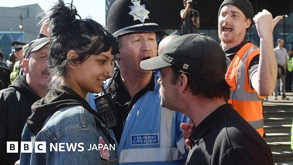 英極右男性に微笑んで立ち向かい 女性の写真が話題に