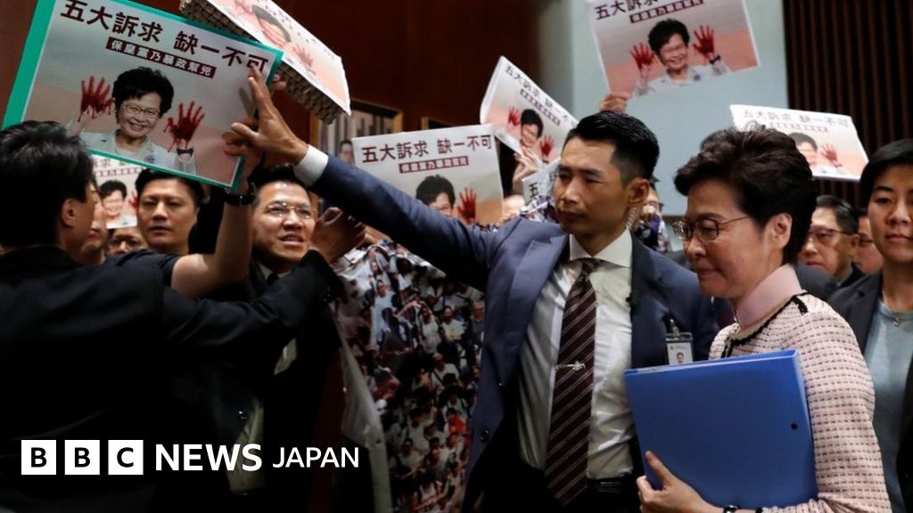 演説が2度にわたって中断された後、立法会は中断された。このため、反政府デモの発端となった逃亡犯条例の改定案は正式に撤回されなかった。