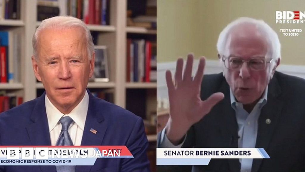 サンダース氏はこの日、バイデン氏のインターネット放送に参加し、同氏と対話。その模様は、両者の顔を配した2分割の画面で配信された。