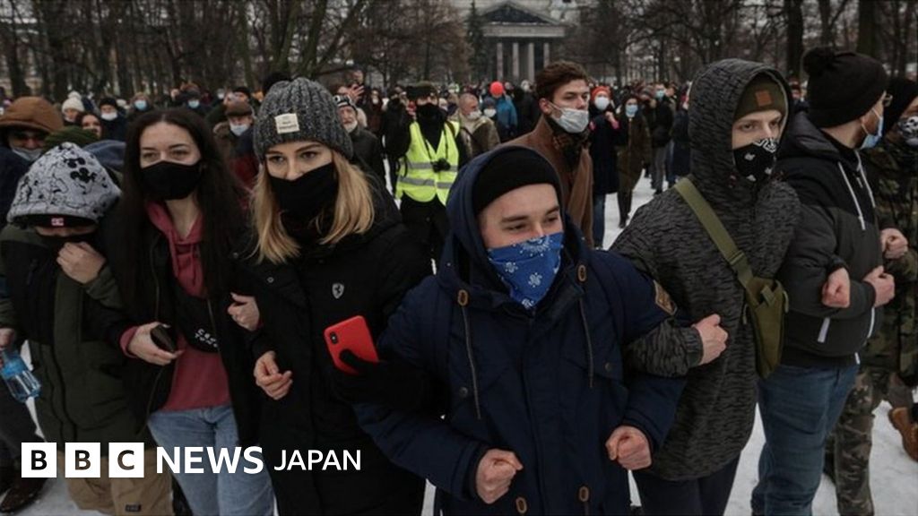 ナワリヌイ氏の釈放を求める無許可デモは、ロシア極東地域やシベリアからモスクワ、サンクトペテルブルクまで、約100の市や町で行われた。