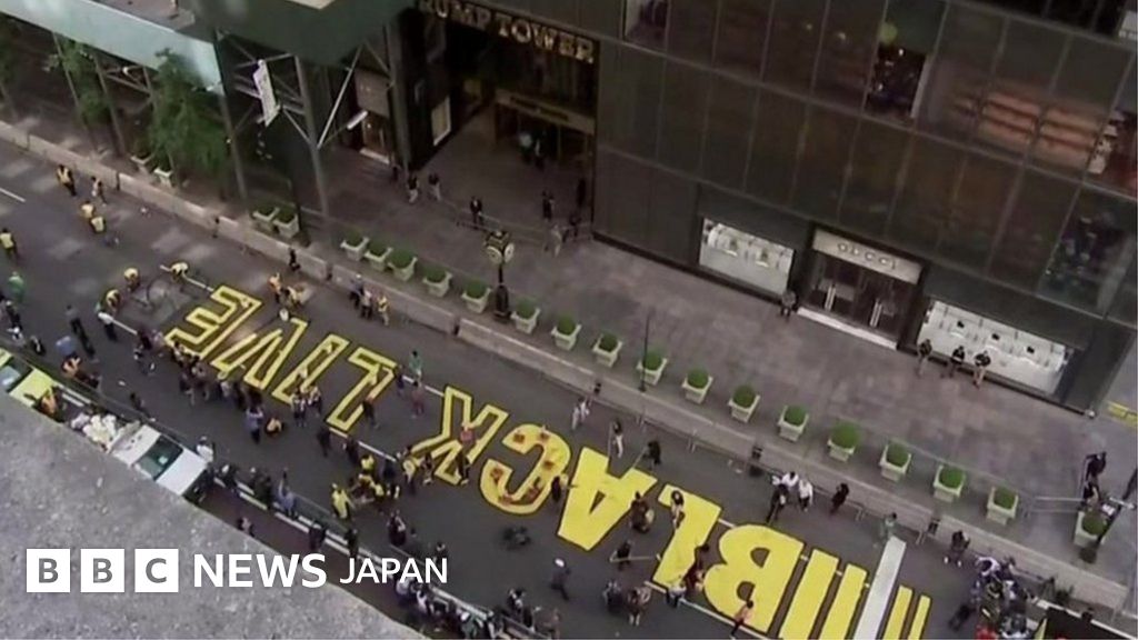 米ニューヨーク市の中心部にある高層ビル「トランプタワー」の前の車道に、「Black Lives Matter」と太い黄色い文字がペンキで描かれた。
