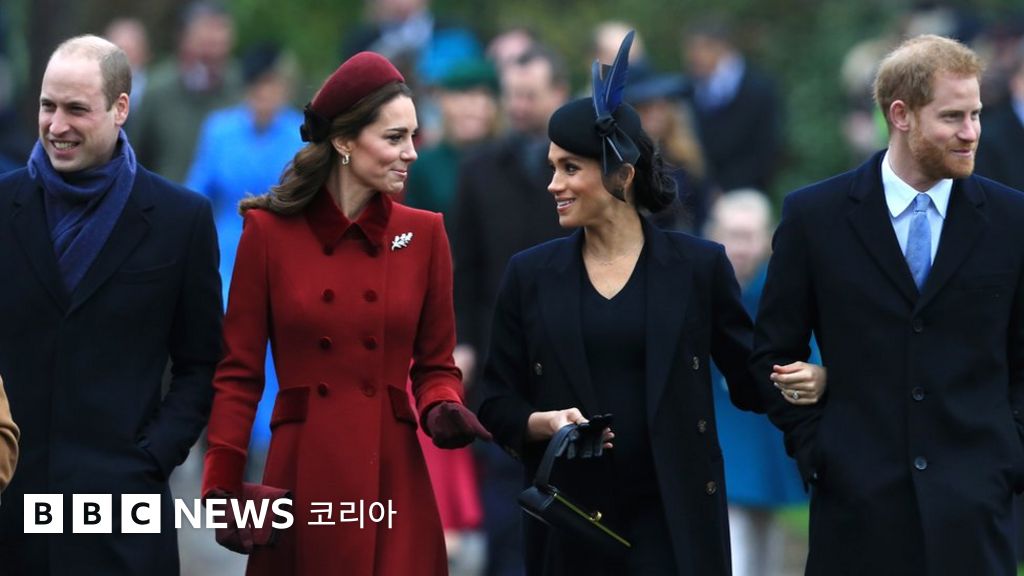 케임브리지 공작(윌리엄 왕자)과 공작부인(케이트 미들턴), 그리고 서식스 공작(해리 왕자)과 공작부인(메건 마클)은 노포크의 왕실 별장에서 예배를 마치고 나오면서 모두 미소를 지었다.