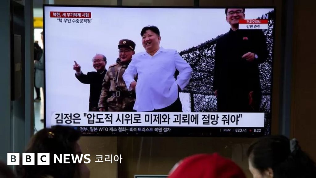 사진 설명, 24일 오전 서울역 대합실에서 시민들이 북한의 미사일 발사 관련 뉴스를 시청하고 있다