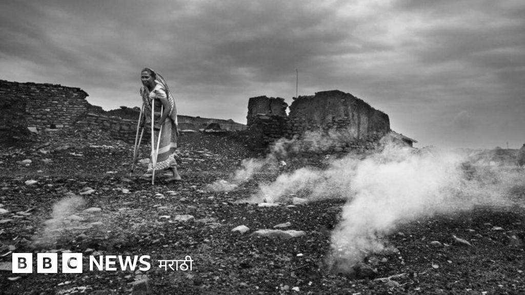 वरील छायाचित्रात भारतातील झारखंड राज्यातील एका कोळसा खाणीच्या निखाऱ्यांवरून एक दलित (पूर्वी ज्यांना अस्पृश्य म्हणून ओळखलं जायचं) महिला कामगार कुबड्या घेऊन चालताना दिसतेय.