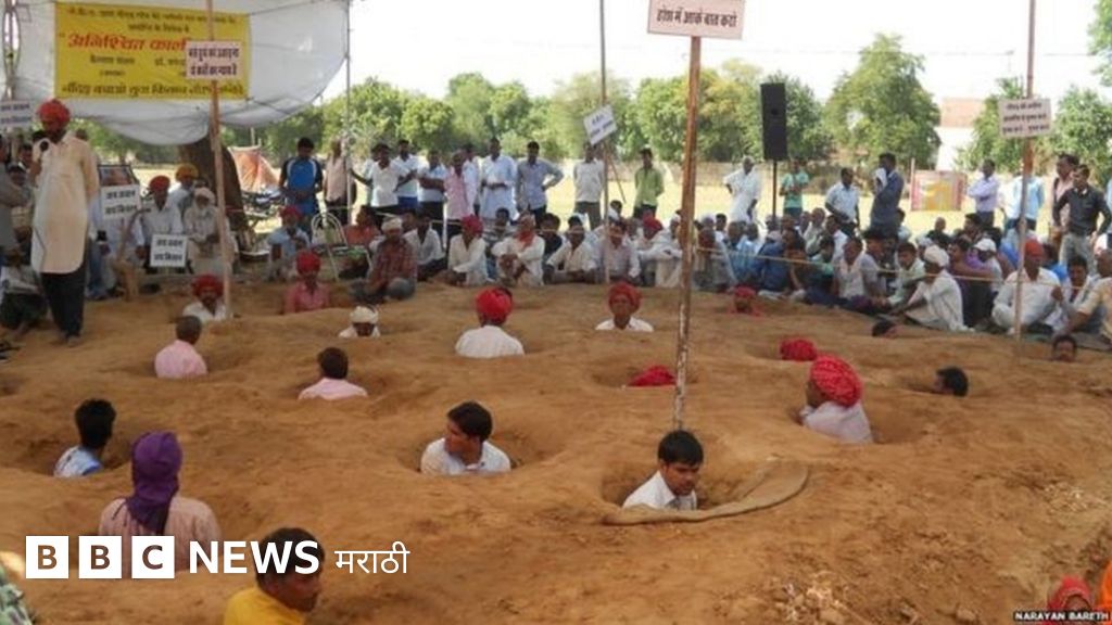 भूसंपादनाविरोधात शेतकऱ्यांनी स्वतःला जमिनीत गाडून घेतलं
