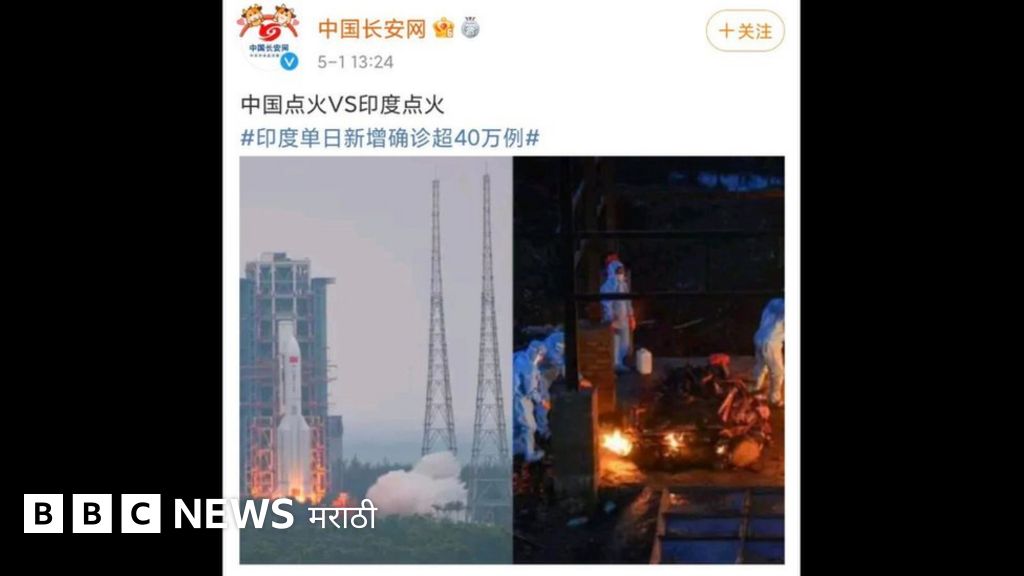सोशल मीडिया साईट वीबोवर टाकलेल्या या पोस्टमध्ये एक फोटो होता त्यात एकीकडे चीनचं उडतं रॉकेट तर दुसरीकडे भारतातल्या जळत्या चिता दाखवल्या होत्या.