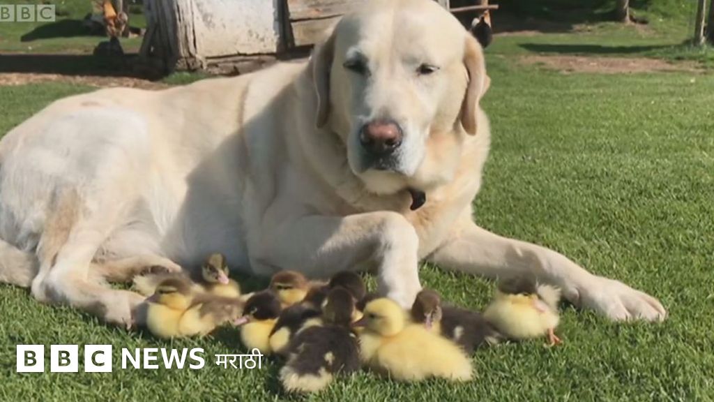 पाहा व्हीडिओ - बदकाच्या पिलांना सांभाळतोय कुत्रा!