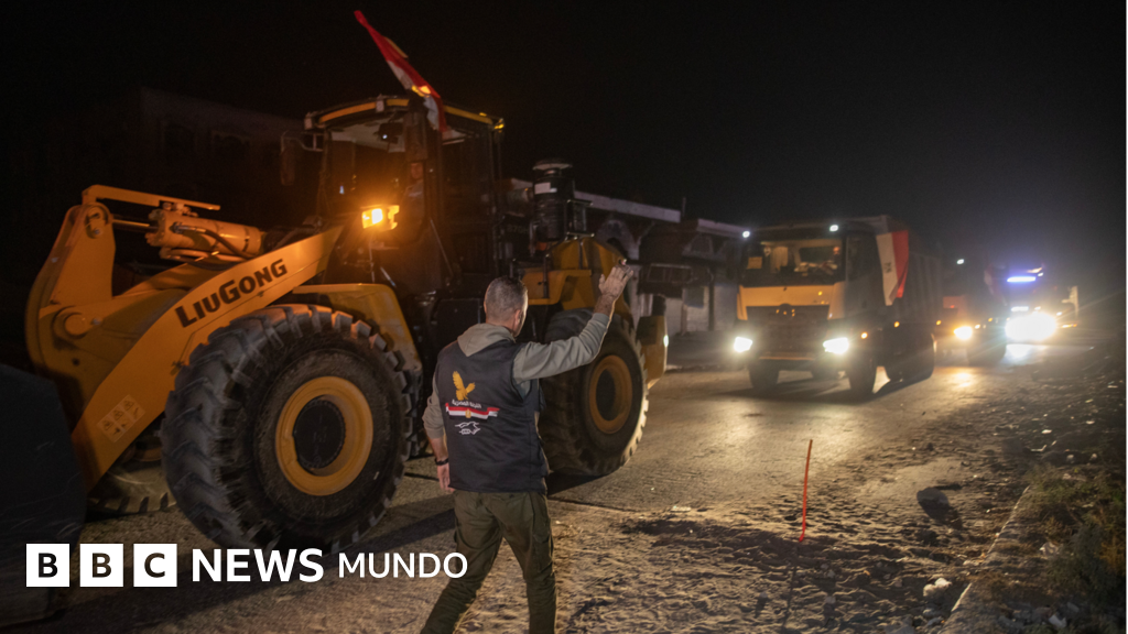 Pie de foto, Equipos egipcios cruzan a la Franja de Gaza