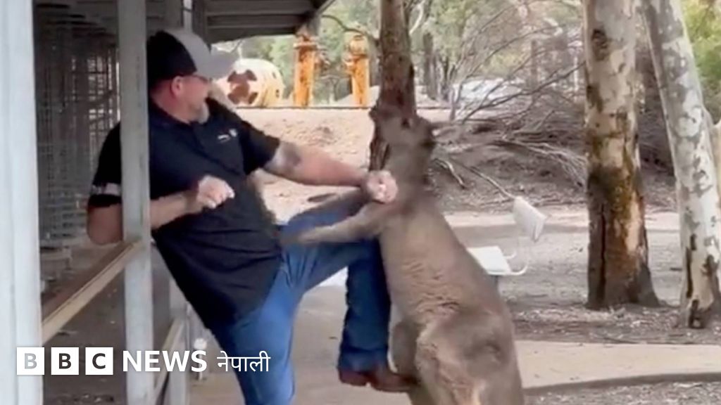 ती व्यक्ति र त्यो छुच्चो क्याङ्गरूबीच केही बेर घम्साघम्सी परेको थियो। पछि ती अमेरिकी पर्यटकलाई उनका छोराले पनि सघाए।