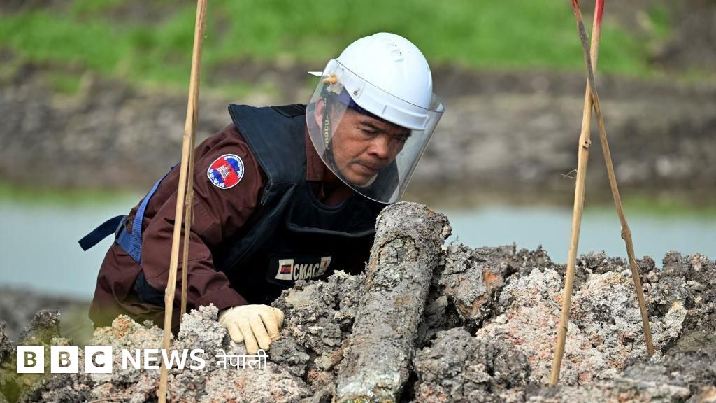 तस्बिरको क्याप्शन, क्याम्बोडियामा युद्धकालमा बिच्छ्याइएका ल्याण्ड माइन हटाउने कार्यमा अन्तर्राष्ट्रिय सहयोग हुँदै आएको छ