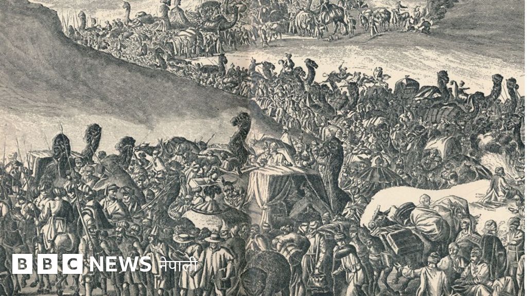 मरुभूमिमा एउटा नगर नै हिँडिरहेको जस्तो देखिन्थ्यो। दाससहित सबै जना सुनका गहना र पर्सियाली रेसमका वस्त्रमा सुसज्जित थिए।