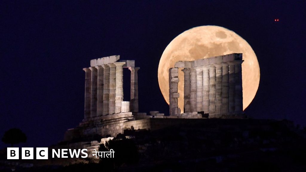 एउटा दुर्लभ खगोलीय घटनामा 'सुपर ब्लड मून' भनिने अवस्थाको चन्द्रमालाई सुन्तला र रातो मिश्रित रङ्गमा देखिएको छ।
