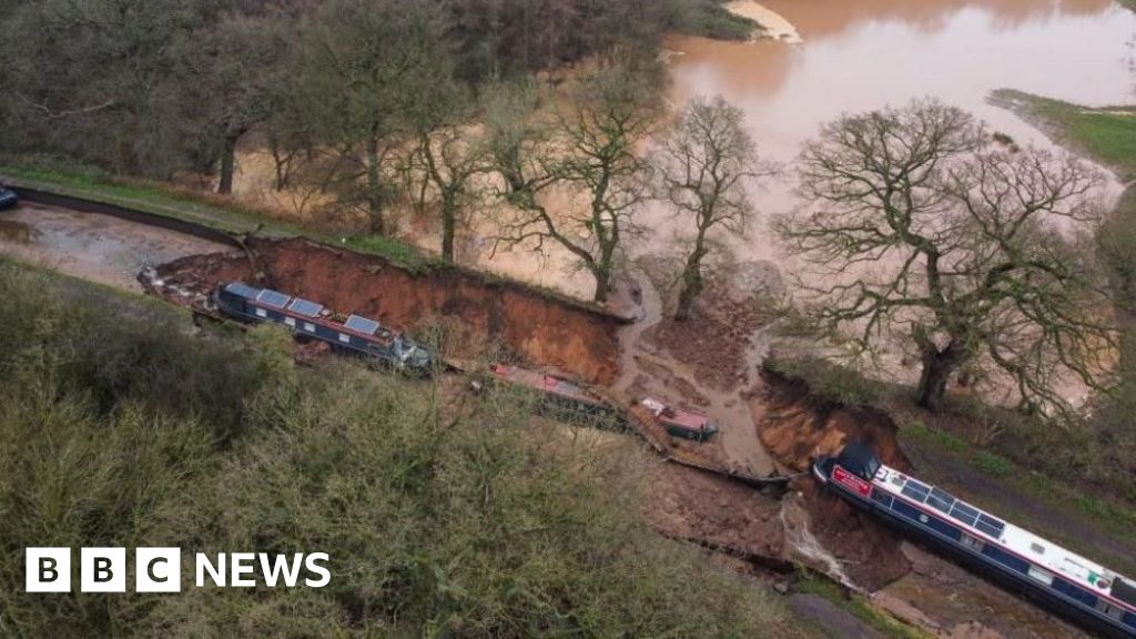 Engineers from the Canal and River Trust said it appeared an embankment had failed, causing water to rush into a nearby field - and the canal bottom to fall away, leaving a trench.