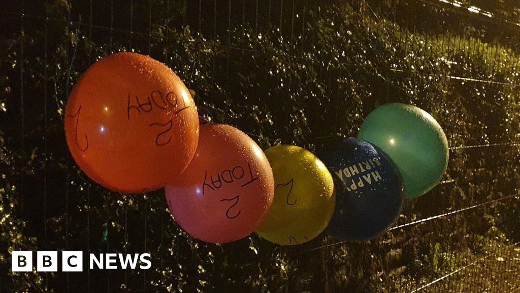 Jonathan ShawColourful party balloons have been tied to temporary fencing on a road in Derby to sarcastically celebrate the second anniversary of its partial closure.