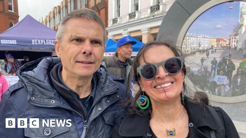 Neil Ball and his wife Ana, who comes from São Paolo and has been in the UK for almost 30 years, said it was "fantastic and amazing" to see the beach in her homeland from her adopted home in Suffolk.