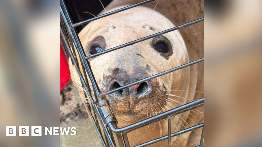 The grey seal was found lying on the slipway for the Fleetwood to Knott-End Ferry in Lancashire on Saturday morning.